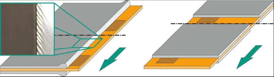 激光伤害风险:完成接带及设备各部位设置后,设备进入正常生产状态。在此过程中,应保持设备屏蔽门处于关闭状态。正常生产过程中,模切部位有激光产生,屏蔽门玻璃视窗一般具有防激光伤害功能。如不具备或人员需要打开屏蔽门观察激光部位,必须配备专用激光防护眼镜,防止直视激光导致眼部受伤。