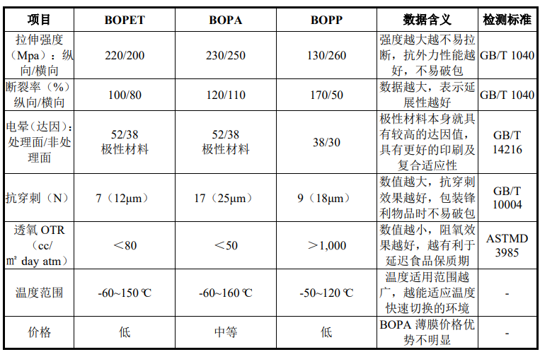与 BOPP,BOPET 等竞争材料相比,BOPA 薄膜在拉伸强度,氧气阻隔性,耐温性上有优势 手机观看绿巨人网站,但成本较高。